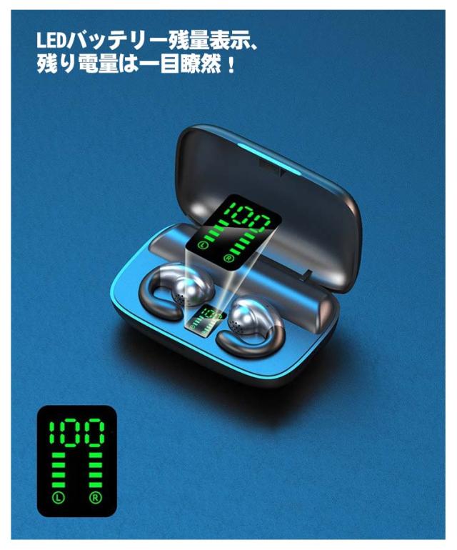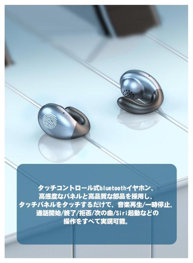 | 骨伝導イヤホンの特徴耳穴を塞がなし安全なデザイン! LEDバッテリー残量表示、残り電量は一目瞭然! 最新の両耳通話技術より両イヤホンハンズフリー通話できます。 HIFIステレオサウンド! タッチコントロール式bluetoothイヤホン、高感度なパネルと高品質な部品を採用し、タッチパネルをタッチするだけで、音楽再生/一時停止、通話開始/終了/拒否/次の曲/Siri起動などの操作をすべて実現可能。 自動ペアリング機能が付きます、簡単接続可能です! または、2度目以降の使用は、ケースからイヤホンを取り出すだけで自動的にペアリング設定済みのデバイスと再接続できます。 快適な装着で耳を保護 人間工学デザイン、オ一プンイ長時無痛装安定に装着でき、落下防止します。 片耳両耳OK&2人で使える! 防水仕様! ランニング中の突然の雨などの水も防ぐことができ天候やシ一ンを選ばず音楽を楽しめます。 | |