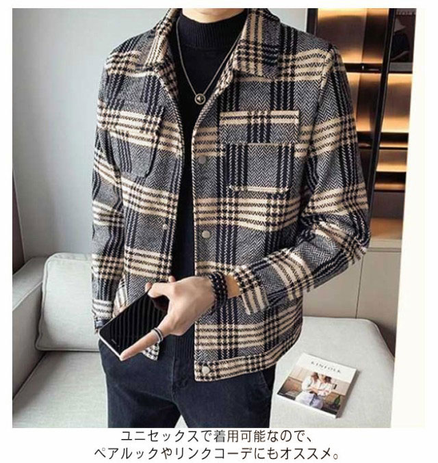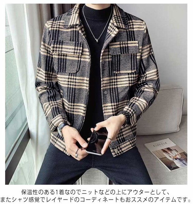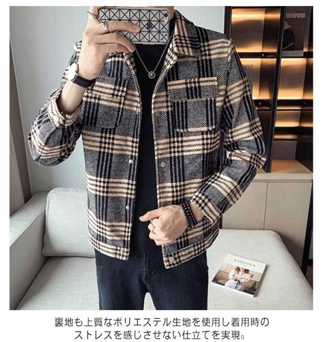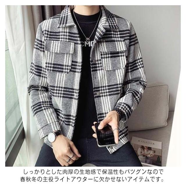 【送料無料】ジャケット メンズ シャツジャケット チェック柄 春 秋 冬 アウター コート 厚手 裏地付き 保温 CPOジャケット カジュアル 通勤 韓国ファッション ストリート 大きいサイズ メンズファッション