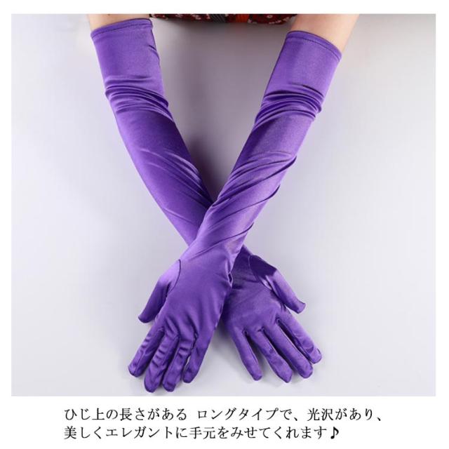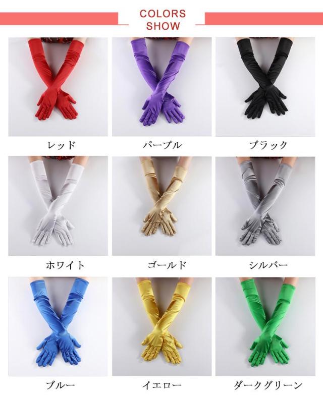 ウエディング グローブ ロンググローブ サテン 手袋 肘上丈 長さ52cm ドレス ブライダル ウェディング フォーマル アームカバー 日焼け対策 レディース 結婚式 披露宴 ハロウイン コスプレ衣装 コスチューム 仮装 パーティー 演奏会 舞台 ステージ 無地 送料無料 黒 白