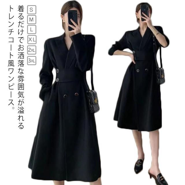 送料無料 ワンピーススーツ トレンチコート風 レディース コート ロングコート フォーマルスーツ 服 スーツ フォーマルワンピース ブラック 黒 入学式 お呼ばれ 卒業式 母 ママ 参観日 発表会 入園式 卒園式 冠婚葬祭 お宮参り 服装 ママスーツ