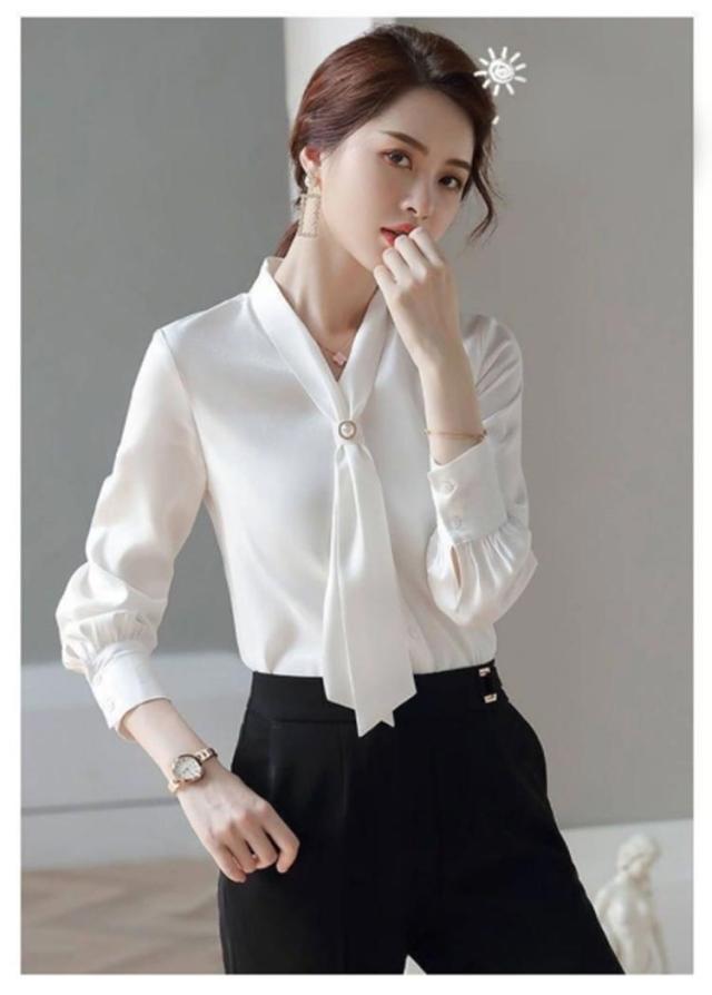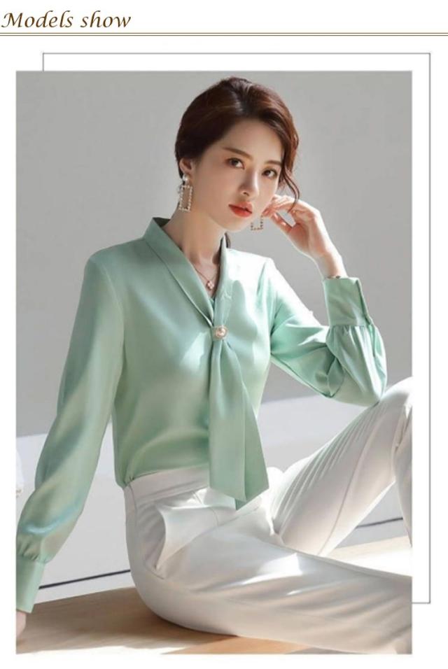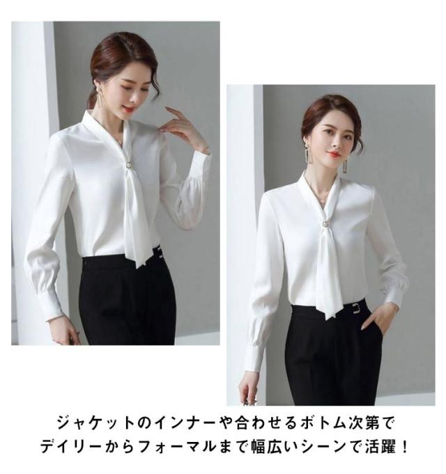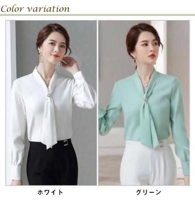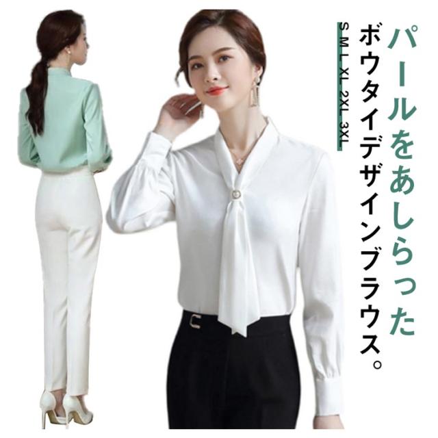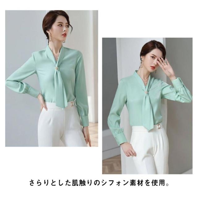 ボウタイブラウス レディース 長袖ブラウス 春 シフォン ブラウス シャツ パール トップス 袖ギャザー スーツ インナー セレモニー ゆったり フェミニン 上品 きれいめ オフィス フォーマル カジュアル おしゃれ OL 卒園式 入園式 入学式 卒業式 結婚式 春服 春 送料無料