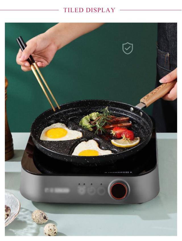 | フライパンが4つに区切られているので、お弁当のおかず作りに便利です。 形がハート型+丸型になっているので、デザートなどの型として使えます。 | |