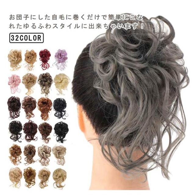 選べる32色 お団子ウィッグ ウィッグ 自然 簡単シュシュ ポイントウィッグ ウィッグ ナチュラル つけ毛 ワンタッチ ヘアアレンジ wig 自然 結婚式 浴衣 花火 ハロウィン 耐熱 カール エアリーカール 部分ウィッグ