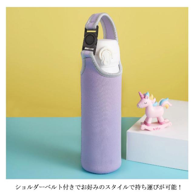 | さまざまなサイズの水筒やペットボトルが収納可能なボトルカバー。 衝撃吸収に優れたネオプレン素材なので、大切なボトルを衝撃や傷から守ります。 よく伸びる伸縮素材のため、今流行りの750mlまでの大容量のペットボトルも収納が可能です。 ショルダーベルト付きでお好みのスタイルで持ち運びが可能! ハンドル部分のジョイントバックルに付属のショルダーベルトを付ければ、肩に掛けて持ち運びが可能。 ショルダーベルトを脱着して、かばんやリュックに掛けたり、手で持つこともできる3Way仕様です。 | |