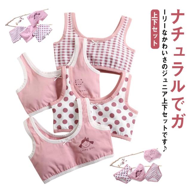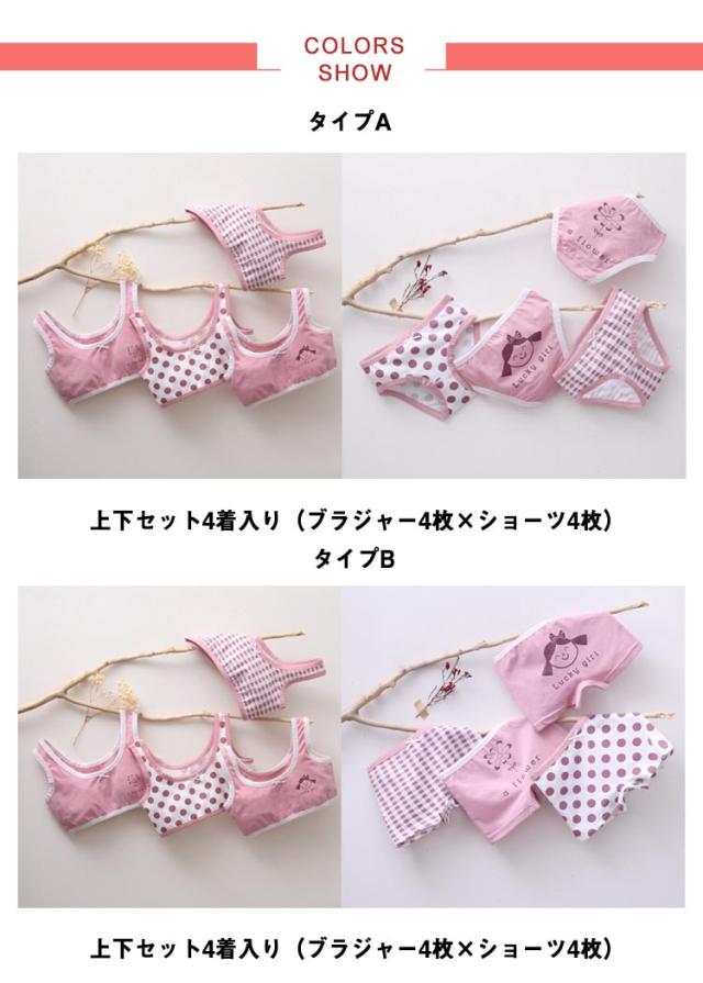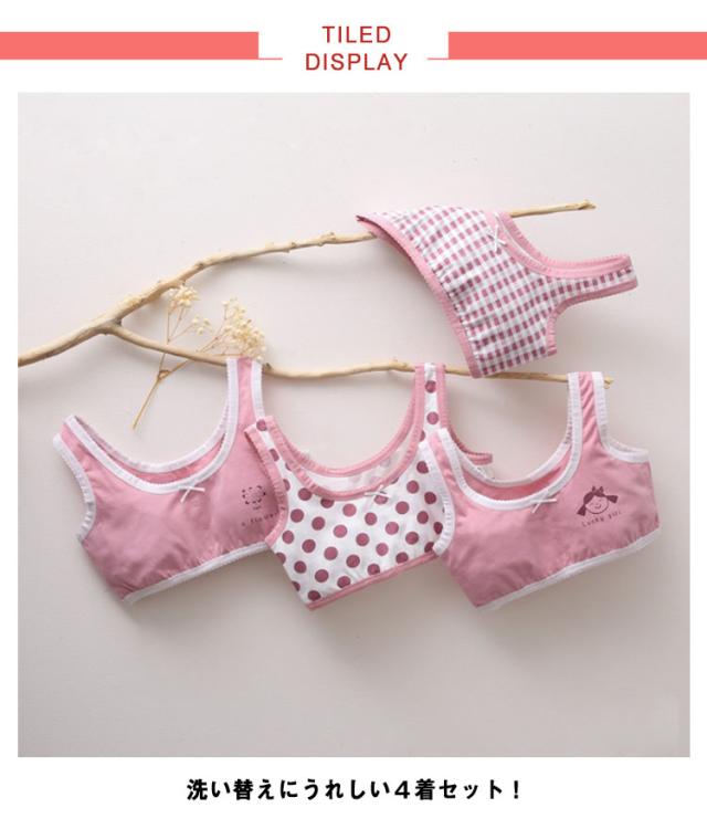 ブラジャー4枚&ショーツ4枚セット!ジュニアブラ セットアップ 女の子 綿 コットン キッズ ブラ 下着 ショーツ パンツ インナー スポーツブラ かわいい 上下セット ブラトップ 肌着 小学生 中学生 ピンク 130 140 150 160 送料無料