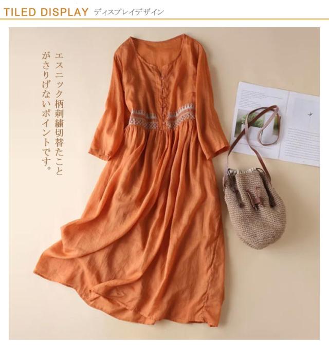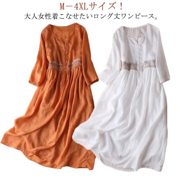綿100% エスニック柄刺繍ワンピース ロングワンピース 送料無料 コットン 刺繍 ワンピース マキシワンピース ゆったり 可愛い 春 夏 エスニック 民族風 ナチュラル 体型カバー おしゃれ 女性