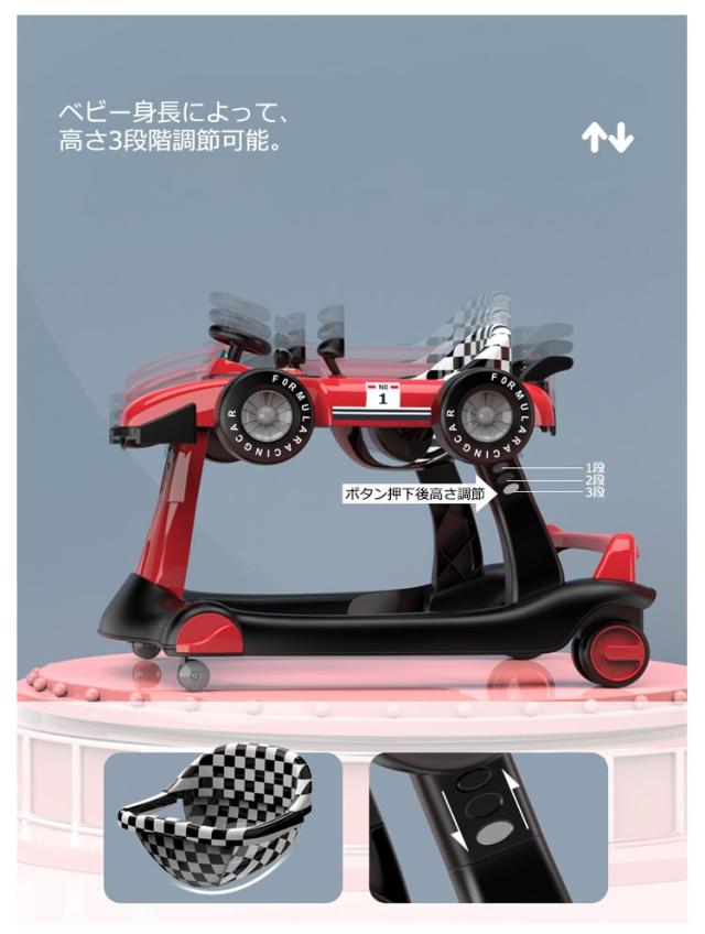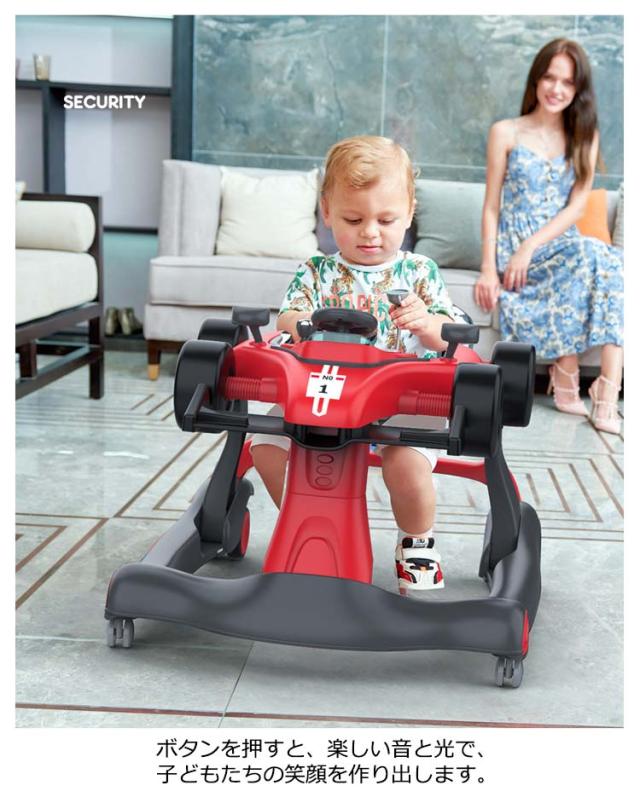 | 【 折りたたみ式 2-in-1多機能 2wayベビーウォーカー 】 成長に合わせて2通りの使い方ができるユニークなベビーウォーカーです。 タイヤやハンドルなどリアルにデザインされていてかっこいい! ボタンを押すと、楽しい音と光で、子どもたちの笑顔を作り出します。 軽量でコンパクトに折りたためるので、収納や持ち運びもラクラク♪ | |