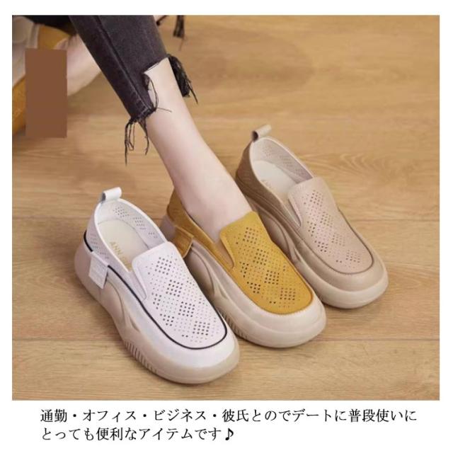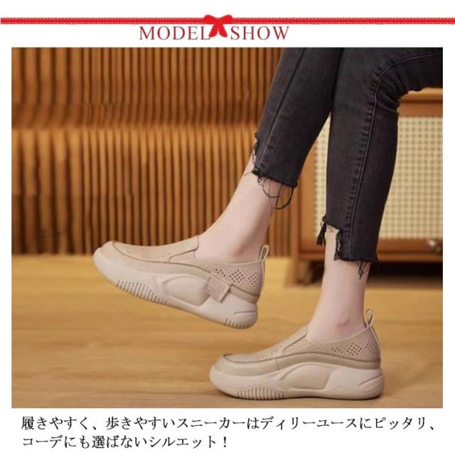 | 毎日履きたい、定番厚底スリッポンシューズ! 履きやすく、歩きやすいスニーカーはディリーユースにピッタリ、コーデにも選ばないシルエット! 靴の先を広くして設計して、ふくらはぎの腫れ、扁平足を改善し、クッション性と衛撃吸収性で足の痛みみを防ぎます。 踏み込む際の衝撃を吸収し、とても歩きやすくて疲れにくいです。 ソフトで快適なPU+通気性抜群なメッシュデザインを採用します。 美脚を作る厚底で、履くだけで簡単にスタイルアップ! さらに、フラットなソールなので、長時間履いても疲れない! 軽量で、足へ負担をかけないので、疲れにくい。 通勤・オフィス・ビジネス・彼氏とのでデートに普段使いにとっても便利なアイテムです♪ | |
