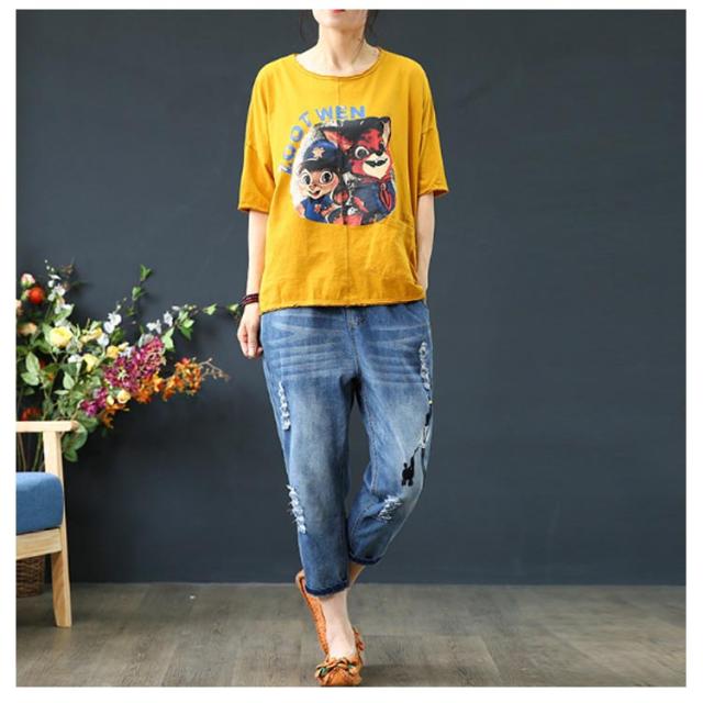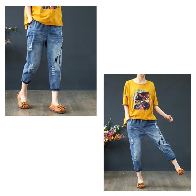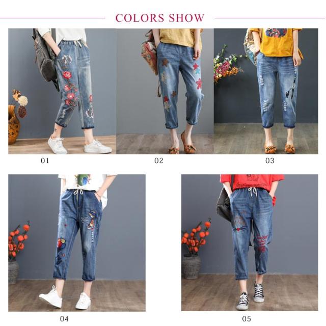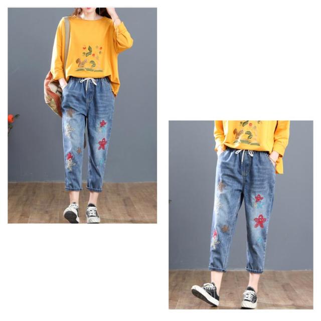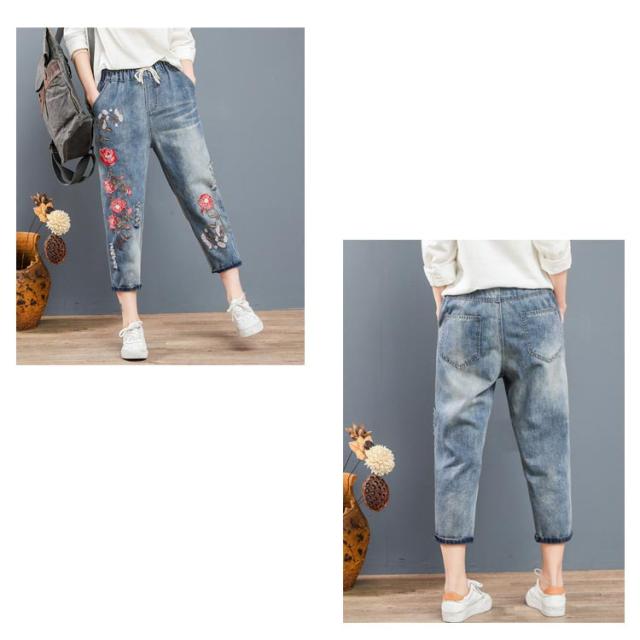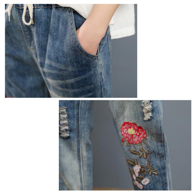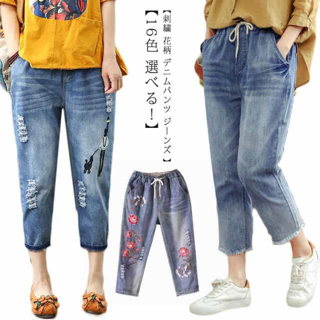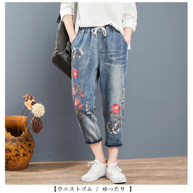 デニムパンツ ジーンズ ジーパン ストレート レディース ガールズ デニム ジーパン 春 夏 刺繍 花柄 ジーンズ 大きいサイズ ウエストゴム パンツ 春 夏 秋 ゆったり 七分丈 おしゃれ カッコイイ ハーフパンツ 体型カバー ズボン カジュアル シンプル 薄手 送料無料