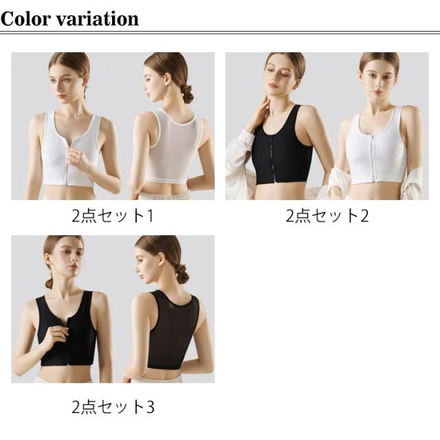和装ブラジャー 胸つぶし 2点セット 胸潰し ブラ ナベシャツ なべしゃつ 胸を小さく見せるブラ 補正下着 揺れない スポーツブラ バスト押さえ 前ファスナー式 男装 コスプレ コスチューム 通気性 ぺた胸 着?せ ブラック ホワイト グレー 着脱簡単
