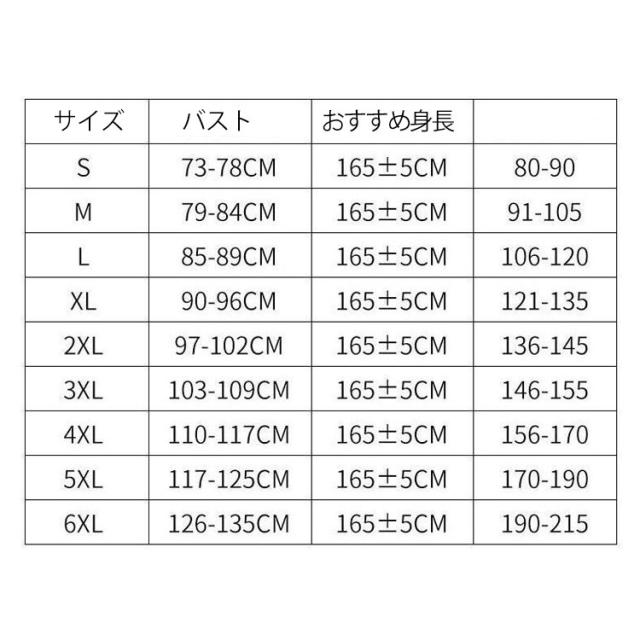 | サイズについての説明 | 詳しくは写真の通り。 S:おすすめ体重40-45kg M:おすすめ体重45-52.5kg L:おすすめ体重53-60kg XL:おすすめ体重60-67.5kg 2XL:おすすめ体重68-72.5kg 3XL:おすすめ体重73-77.5kg 4XL:おすすめ体重78-85kg ※サイズ表の実寸法は商品によって1-3cm程度の誤差がある場合がございます。 |