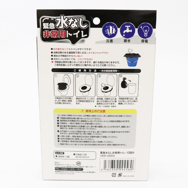 緊急水なし非常用トイレ 10回分 HED-4560【イトウ 防災 水が無くてもトイレができる 非常用トイレ 防災用品 非常用品 防災グッズ 備蓄 災害備蓄 アウトドア キャンプ 仮設トイレ 避難生活 簡易トイレ ポータブルトイレ 携帯トイレ 地震 台風 自然災害 津波 緊急】