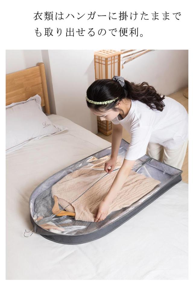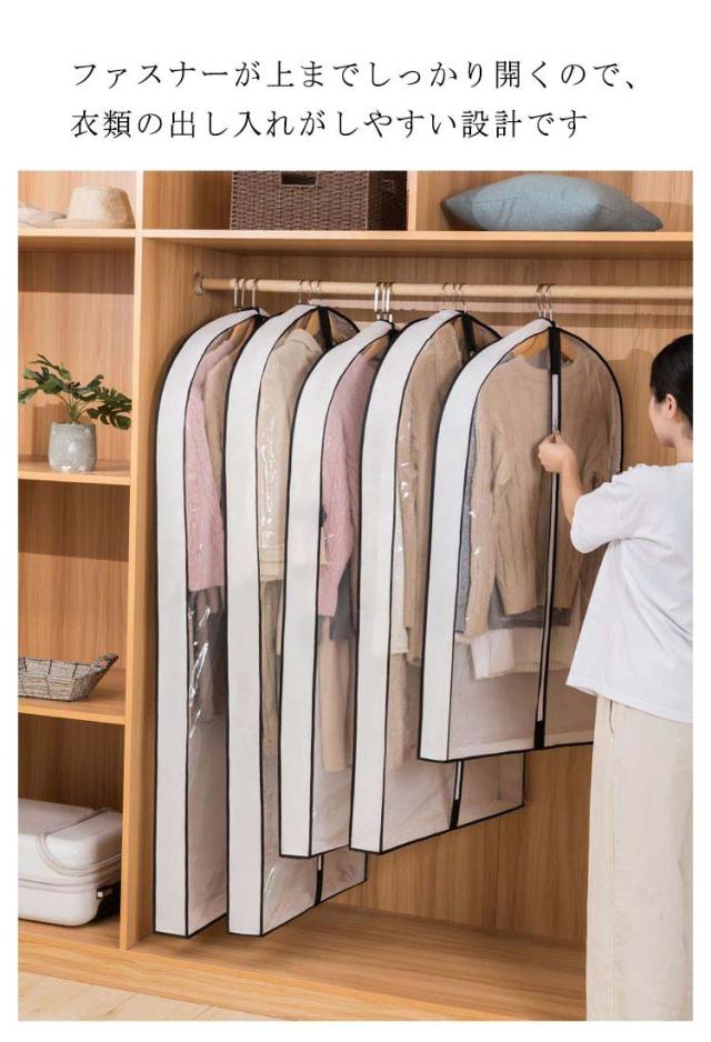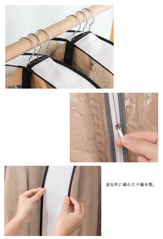 | 大切な衣類をニオイやホコリから守る衣類カバー 通気性に優れた不織布製。湿気やホコリから大切な衣類を守ります 前面は、透明になっていますので、中の衣類が一目でわかります ファスナーが上までしっかり開くので、衣類の出し入れがしやすい設計です 衣類はハンガーに掛けたままでも取り出せるので便利。 | |
