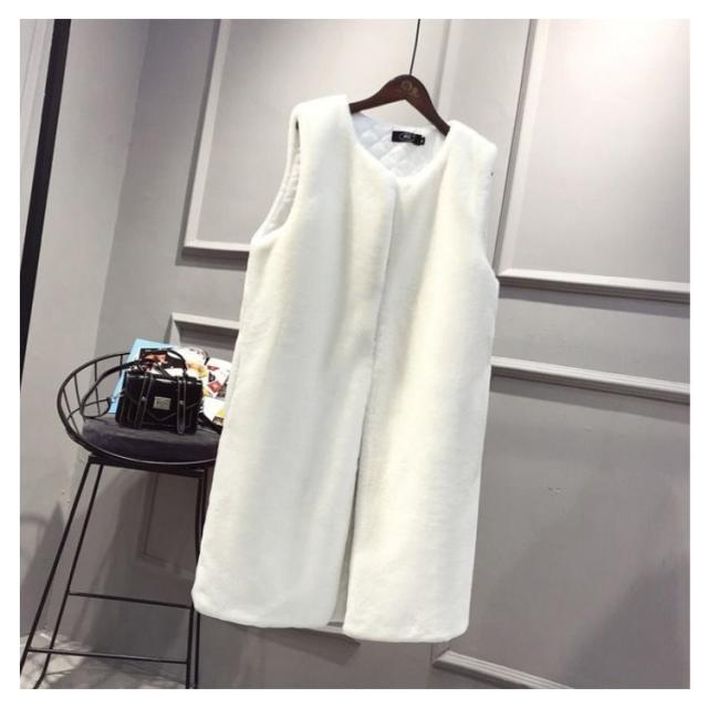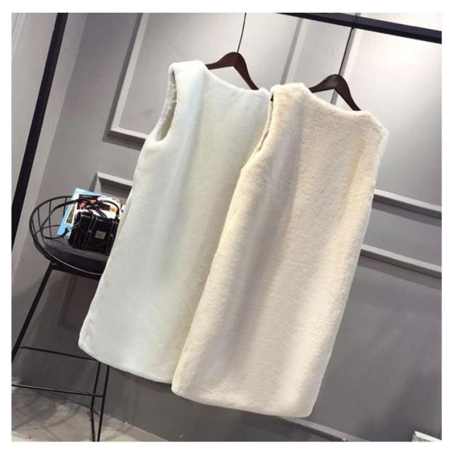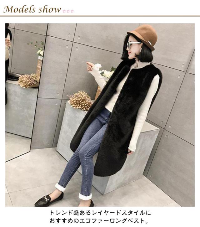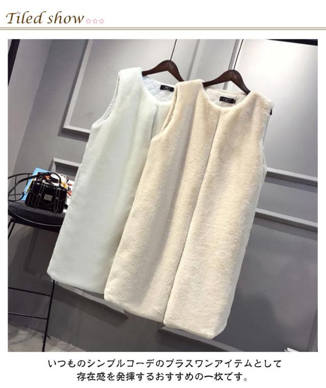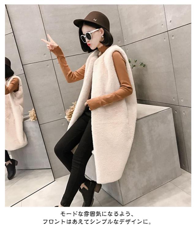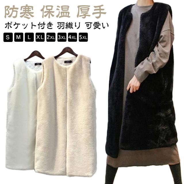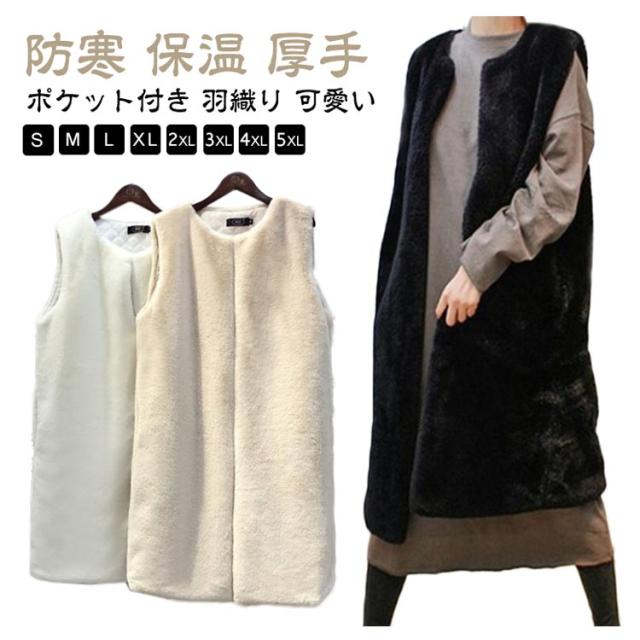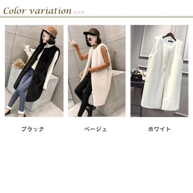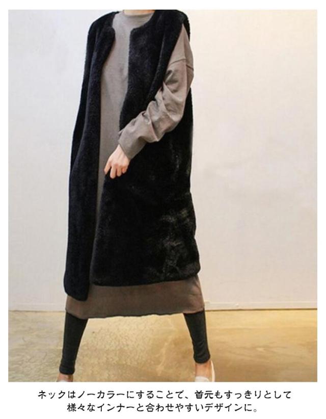 フェイクファー ベスト ロングベスト レディース ファーベスト もこもこ ふわふわ ファーコート ロングコート ノーカラー ノースリーブ ポケット付き 厚手 冬 秋 アウター 羽織り 秋物 秋服 韓国 きれいめ あたっか 防寒 保温 黒 白 ベージュ