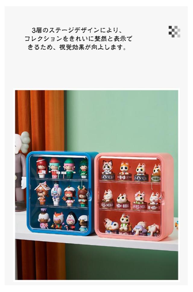 | 【コレクションケース】【壁掛け/卓上】【3段式】【5color】 卓上置く、壁に掛ける2WAYの使い方ができるコレクションケース。 3層のステージデザインにより、コレクションをきれいに整然と表示できるため、視覚効果が向上します。 マグネット仕様の扉で、片手で開閉できます。 壁掛けタイプは、吊り下げヒモ不要のスッキリ仕様、付属の粘着シールがケースを固定します。 ホコリから守るだけでなく、より可愛く・華やかに。 上にも物を置けるので、ちょっとした小物をディスプレイするのも◎ ガシャポン人形やフィギュアなどのコレクションケースです。カラーも5種類あるのでお部屋の雰囲気に合わせられておススメです。 | |