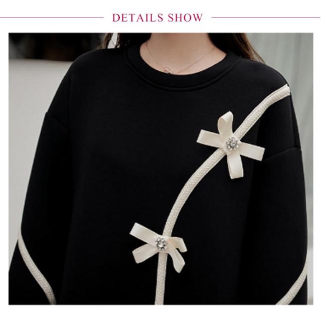 | ポイントのリボンとビジューが大人かわいいです。 甘くなりすぎないモノトーンカラーです。カジュアルアイテムにレディさをプラス。 長めのトップスとしても着れます。上品デイリーコーデにぴったり。 スキニーパンツなど、すっきりとしたボトムスと好相性。 ストレスフリーな着心地のゆったりしたサイズ感。スウェットなのでラフに着こなせます。 | |