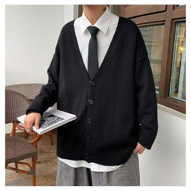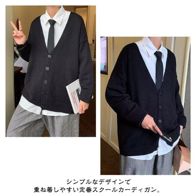 カーディガン メンズ ニットカーディガン 綿混 セーター スクールカーディガン スクールセーター ゆったり 学校 スクール 制服 学生服 通学 男子 中学生 ジュニア スリム vネック 秋冬 秋服 羽織 紺 黒 無地 大きいサイズ 春 秋 冬 送料無料