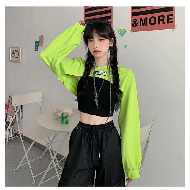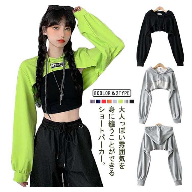 胸あきパーカー レディース ダンス衣装 スウェット パーカー トレーニングウェア 長袖 女性 かわいい ショート丈パーカー へそ出し 韓国風 ヒップホップ kpop 衣装 M L XL
