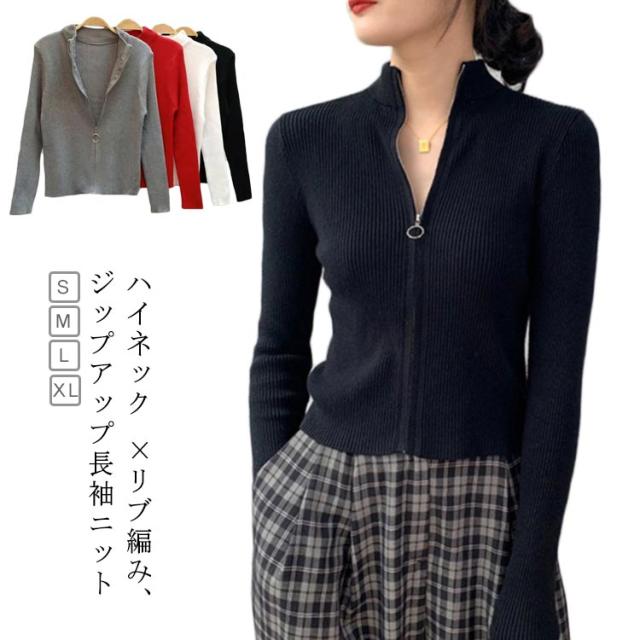 ハイネック ニットカーディガン レディース ボレロ 長袖 ショートニット 上品 カジュアル 羽織 ショート丈 ジップアップ カーデ リブニット 無地 シンプル OL 女性 羽織り 30代 40代 50代 きれいめ お洒落 大人 送料無料