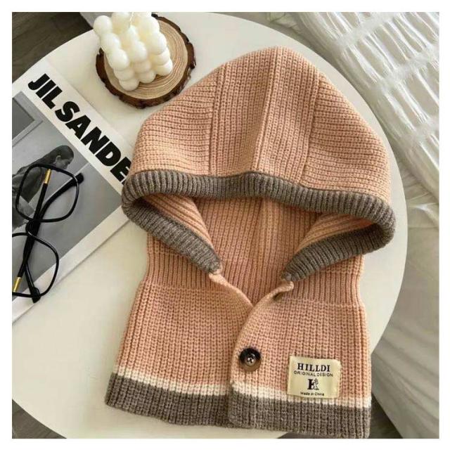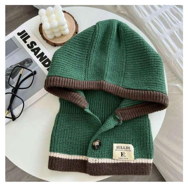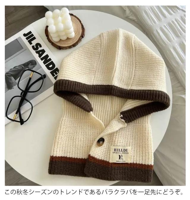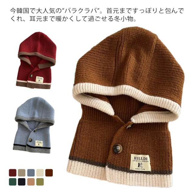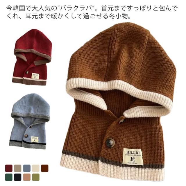 ニットフードバラクラバ レディース バラクラバ フード 帽子 ニット帽 ニットキャップ フードウォーマー ネックウォーマー くすみカラー パイピング フード付き スヌード 秋 冬 秋冬 おしゃれ かわいい ぼうし 韓国