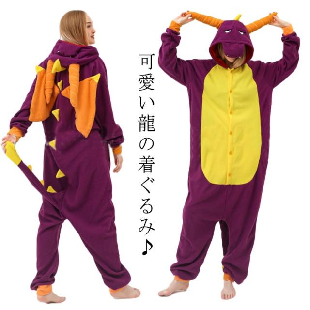 龍 着ぐるみ きぐるみ リュウ 竜 辰 ドラゴン 男女兼用 大人用 辰年 干支 正月 年賀状 仮装 衣装 クリスマス ハロウィン イベント パーティー フリース パジャマ オールインワン 龍コス 動物コスプレ 秋冬 暖かい