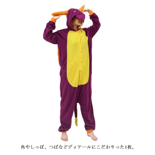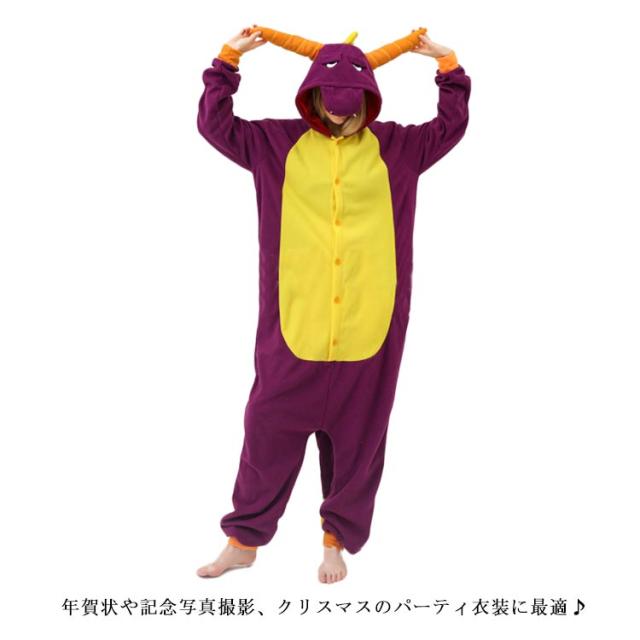 | 可愛い龍の着ぐるみ♪ 年賀状や記念写真撮影、クリスマスのパーティ衣装に最適♪ 角やしっぽ、つばなどディテールにこだわりった1枚。 フリース素材で柔らかく暖かい、パジャマやルームウェアとしても大活躍です! 豊富なサイズ展開、中学生や大人、男女兼用できます。 | |