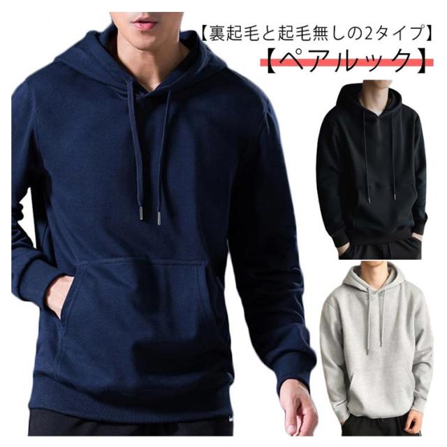 【送料無料】【裏起毛と起毛無しの2タイプ】メンズ レディース パーカー プルオーバー 大きいサイズ 韓国 ファッション 無地 おしゃれ 春 秋 冬 ゆったり フード スウェット 裏起毛 長袖 スエット レディース ペアルック カップル