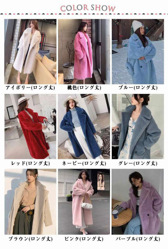 | 色 | アイボリー(ロング丈) ブルー(ロング丈) レッド(ロング丈) ネービー(ロング丈) グレー(ロング丈) ブラウン(ロング丈) ピンク(ロング丈) パープル(ロング丈) 桃色(ロング丈) 茶色(ロング丈) 水色(ロング丈) ブラック(ロング丈) ベージュ(ロング丈) カーキ(ロング丈) オレンジ(ロング丈) ライトブルー(ロング丈) |