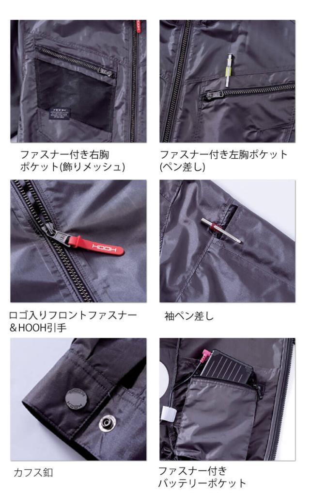 HOOH 快適ウェア サイドファン長袖ジャケット(ファンなし) V7712 村上被服
