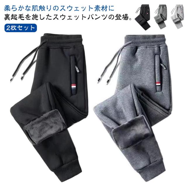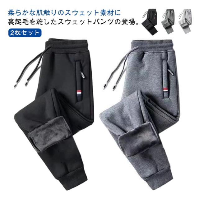 2枚セット 裏起毛パンツ メンズ 裏起毛 スウェットパンツ 秋 冬 防寒 厚手 暖かい ロングパンツ ウエストゴム 保温 防風 部屋着 運動着 カジュアルパンツ イージーパンツ 長ズボン 裏フリース ボトムス 大きいサイズ 冬服 カジュアル スポーツ アウトドア
