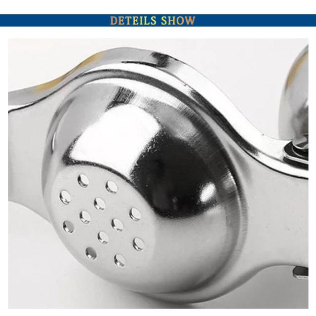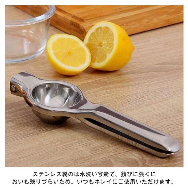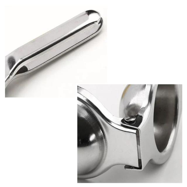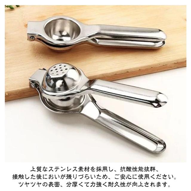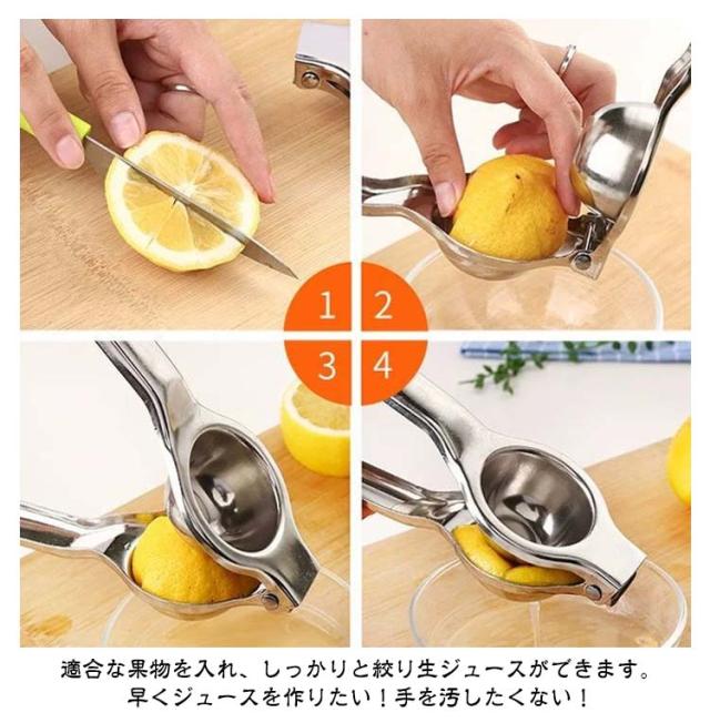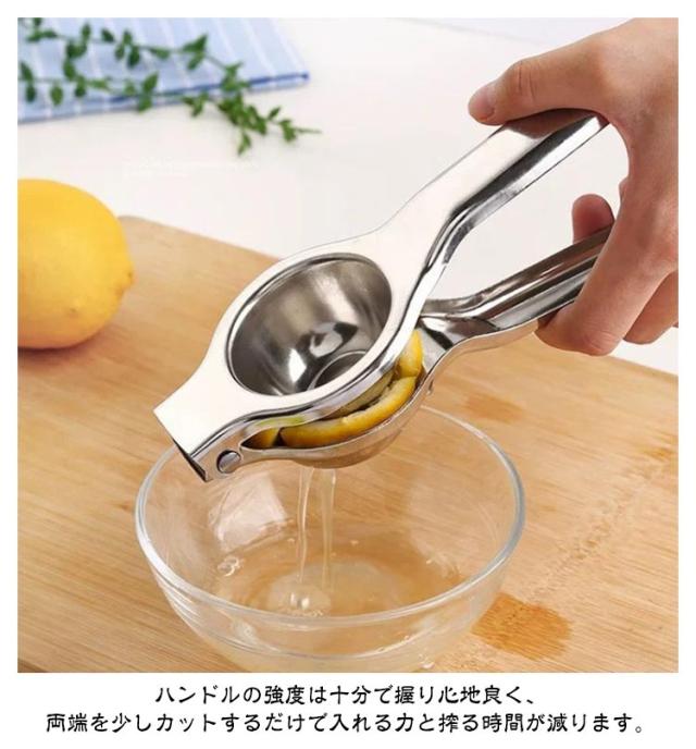 | 【レモン絞り器】【ステンレス製】【簡単・便利】 上質なステンレス素材を採用し、抗酸性能抜群、接触した後においが残りづらいため、ご安心に使用ください。ツヤツヤの表面、分厚くて力強く耐久性が向上されます。 果物をしっかり固定し、無駄なく絞れます。種がはみ出てしまうこともなくきれいに残っています。 ハンドルの強度は十分で握り心地良く、両端を少しカットするだけで入れる力と搾る時間が減ります。 適合な果物を入れ、しっかりと絞り生ジュースができます。早くジュースを作りたい!手を汚したくない! ステンレス製のは水洗い可能で、錆びに強くにおいも残りづらいため、いつもキレイにご使用いただけます。 | |