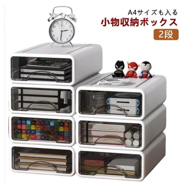 収納ケース 引き出し 2段 卓上収納ケース 収納ボックス A4対応 レターケース ファックス台 大容量 中身が見える ワイド 積み重ね スタッキング 文房具収納 書類ケース 書類入れ 小物収納 ミニチェスト デスク収納 机上収納 アクセサス