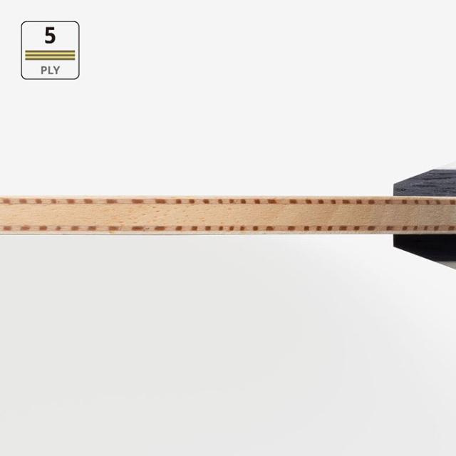 木材5枚合板ラケットの中では薄めの板厚ながら、適度な弾みを実現。