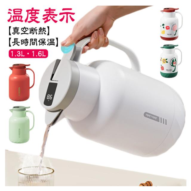 魔法瓶 保温 温度表示 ポット 1.3L 1.6L 保温ポット 長時間保温 保冷 卓上ポット 真空断熱 ジャグ ピッチャー ティーポット コーヒーサーバー アウトドア キャンプ ハンディポット まほうびん おしゃれ 漏れ防止