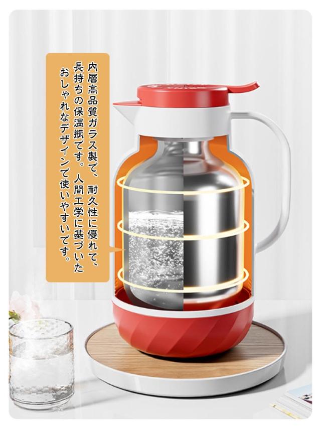 | 【1.3L・1.6L】【温度表示】【真空断熱】【長時間保温】 温度測定機能が付いており、外層は密封されたpp、内槽はガラス銀メッキ材料、耐腐食性である、保温時間約48時間。 内層高品質ガラス製で、耐久性に優れて、長持ちの保温瓶です。人間工学に基づいたおしゃれなデザインで使いやすいです。 保温効果・保冷効果が高く、金属臭がないので風味を損なわずにドリンクを楽しめます。 一回のお湯を沸かすと家族全員の飲み水の需要を満たすことができます。頻繁にお湯を沸かす必要はなく、時間を節約できます、シンプルでユニークなデザインで、卓上ポットにぴったり。 卓上ポットの蓋が外せるタイプで、片手でらくらく注げます。ワンタッチレバーで片手でもらくらくお手入れが非常に簡単です。 家庭用、喫茶店、ドリンクショップに最適です(酸性飲み物の保存に適用しない)。お茶、コーヒー、水、ミルク、ジュースなどの保存用の卓上ポットとして大活躍です。 | |