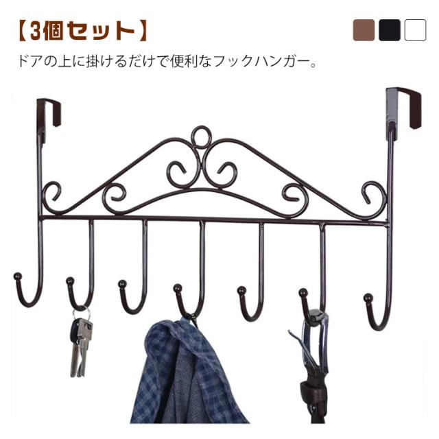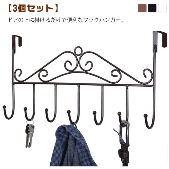 【3個セット】フックハンガー ドアの上 7連 ドアフックハンガー ドアフック ドアハンガー コートハンガー ドア ハンガーラック コートかけ 帽子 バッグ かばん ショルダーバッグ スカーフ マフラー 収納 雑貨