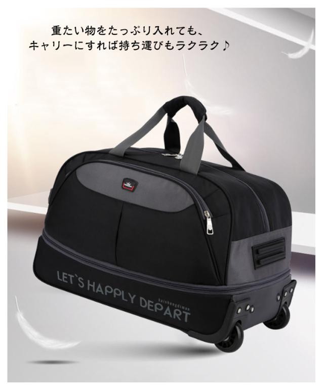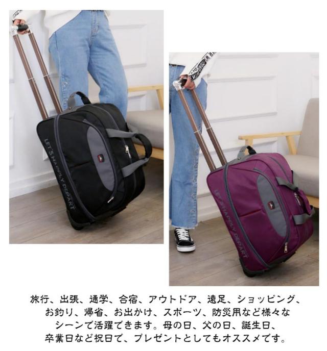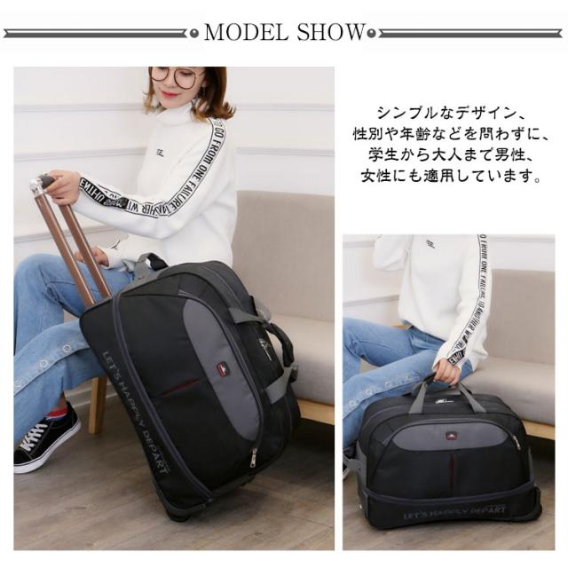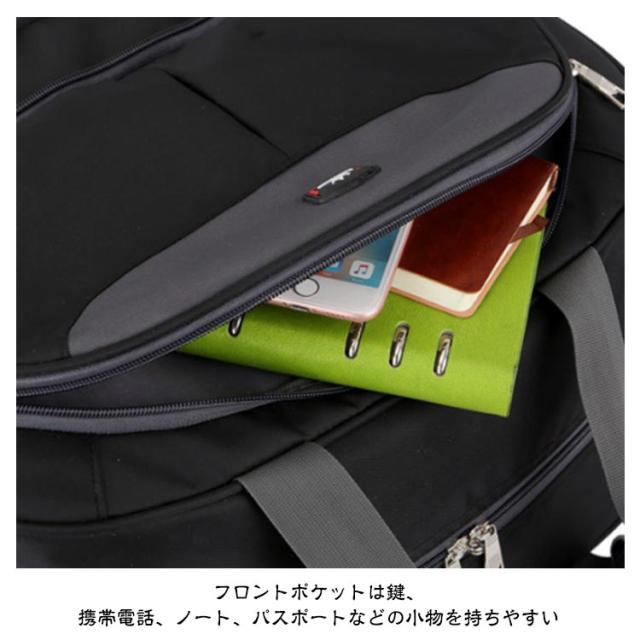 | 機内持ち込み可能・拡張できるボストンキャリーバッグ。 重たい物をたっぷり入れても、キャリーにすれば持ち運びもラクラク♪ ゴム構造ローラーディザインで2輪キャスターは消音の設計があります。凸凹な路面でもスムーズで安定した移動を可能にします。 フロントポケットは鍵、携帯電話、ノート、パスポートなどの小物を持ちやすい メイン収納部分は開口部が大きく開くダブルファスナー仕様。 中がすべて見渡せて大きい荷物もストレスフリーで出し入れ出来ます。 拡張機能搭載で、荷物が多くても安心。 丈夫の撥水オックスフォード生地、防水効果が良い、雨の日でも安心できます。また、丈夫で耐久性がある、長い時間でも使います、実用性が高いです。 シンブルなデザイン、性別や年齢などを問わずに、学生から大人まで男性、女性にも適用しています。旅行、出張、通学、合宿、アウトドア、遠足、ショッピング、お釣り、帰省、お出かけ、スポーツ、防災用など様々なシーンで活躍できます。母の日、父の日、誕生日、卒業日など祝日で、プレゼントとしてもオススメです。 | |