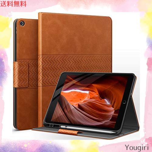 auaua iPad 第8世代ケース/iPad 第7世代ケース 鉛筆ホルダー付き ビーガンレザー 自動スリープ/ウェイク機能付き iPad 10.2インチ用 (ブラウン)