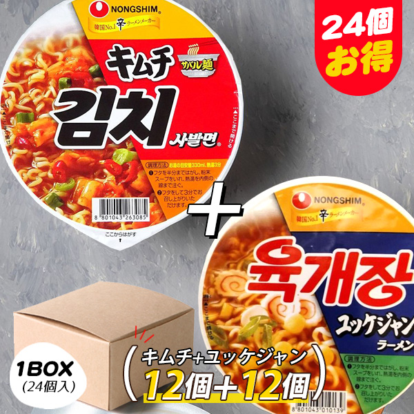 [農心] キムチサバル麺 カップ12個+ユッケジャンカップ麺12個 日本語版 / 1BOX(24個入) ノンシム 韓国らーめん キムチラーメン 箱売り