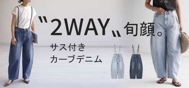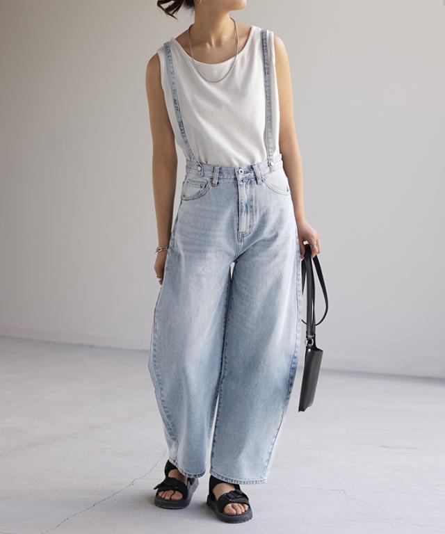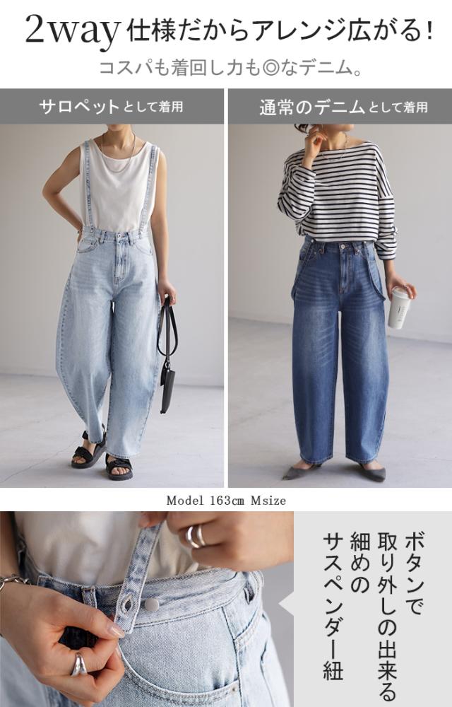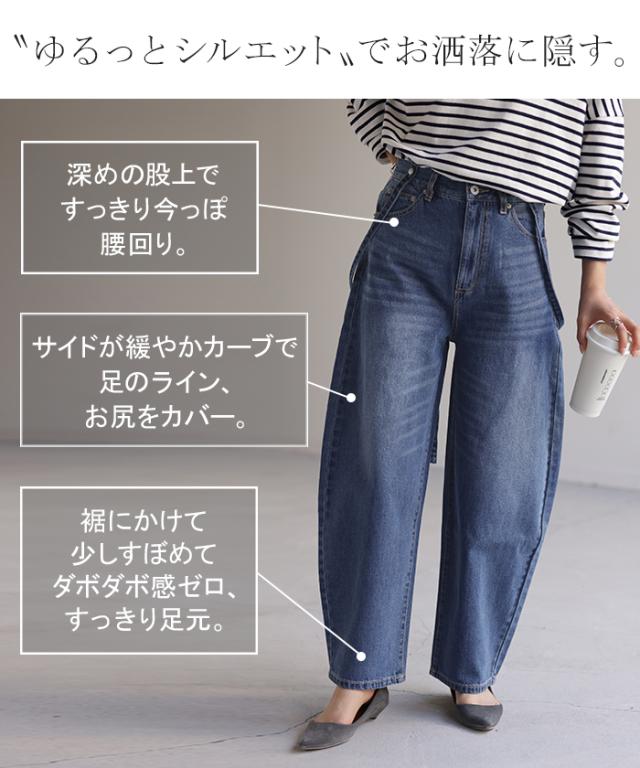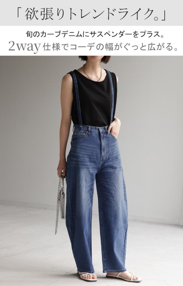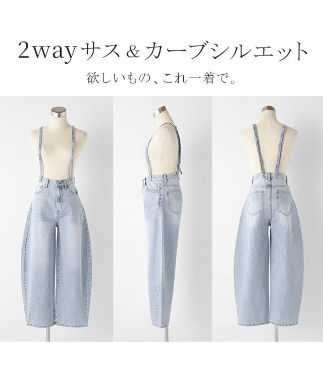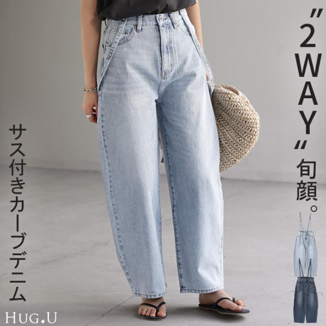 デニム 2way カーブパンツ サロペ デニムパンツ パンツ レディース サロペット カーブデニム ジーンズ ジーパン ボトム オールインワン つなぎ ゆったり 体型カバー ボトムス ズボン 脚長 ストレート サスペンダー ワイド 大きいサイズ 春 夏 HUG.U 秋新作