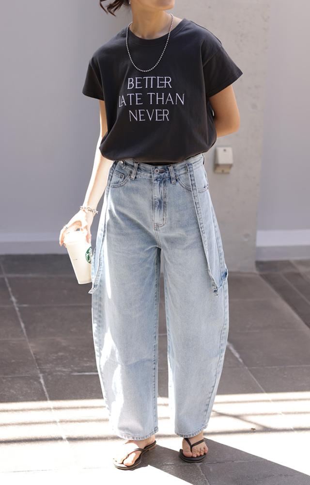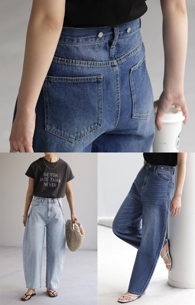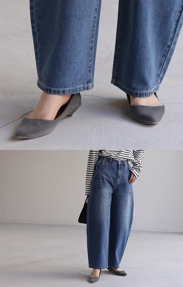 ひざから裾にかけてゆるやかにカーブするフォルムが魅力のデニムパンツです。