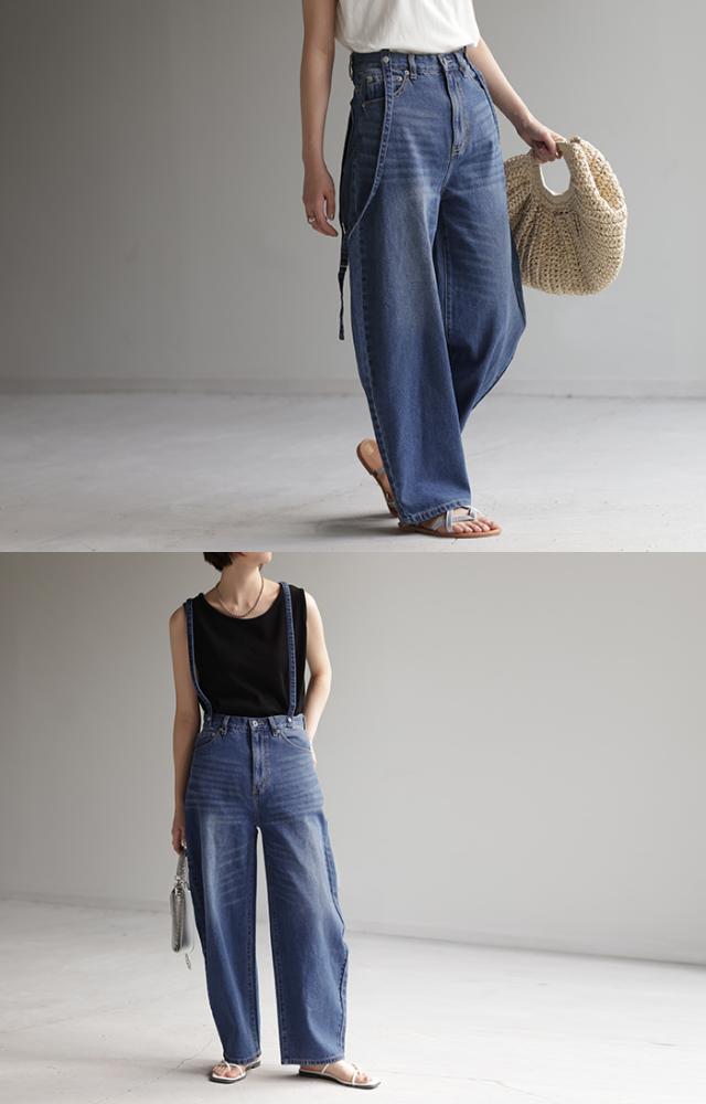 取り外しができるサスペンダー付きなので2WAYでのスタイリングを楽しめます。