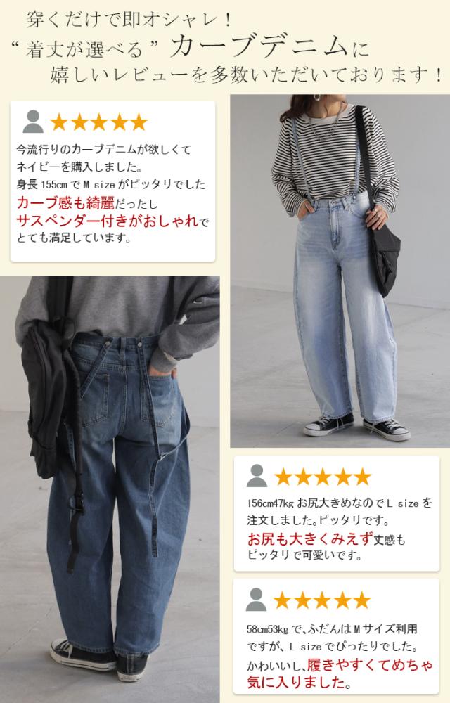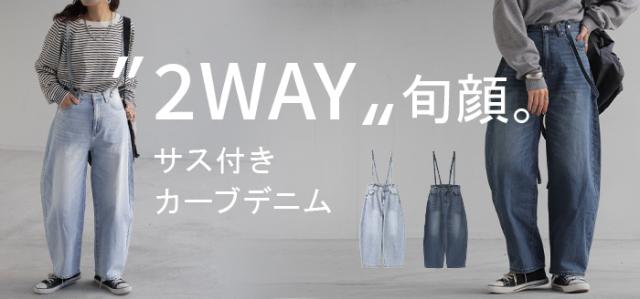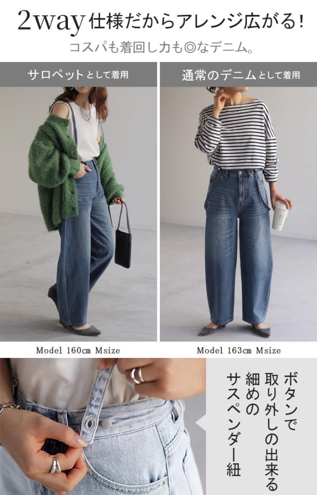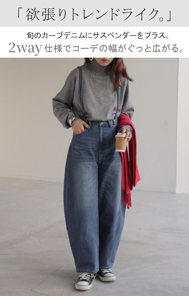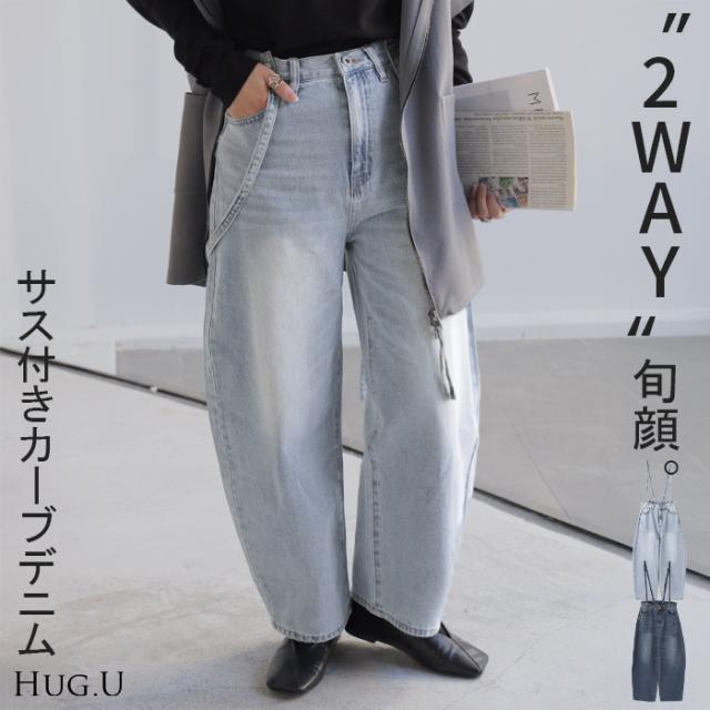 デニム 2way カーブパンツ サロペ デニムパンツ パンツ レディース サロペット カーブデニム ジーンズ ジーパン ボトム オールインワン つなぎ ゆったり 体型カバー ボトムス ズボン 脚長 ストレート サスペンダー ワイド 大きいサイズ 春 夏 HUG.U 秋新作