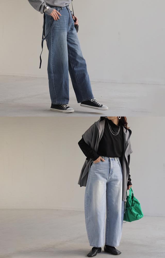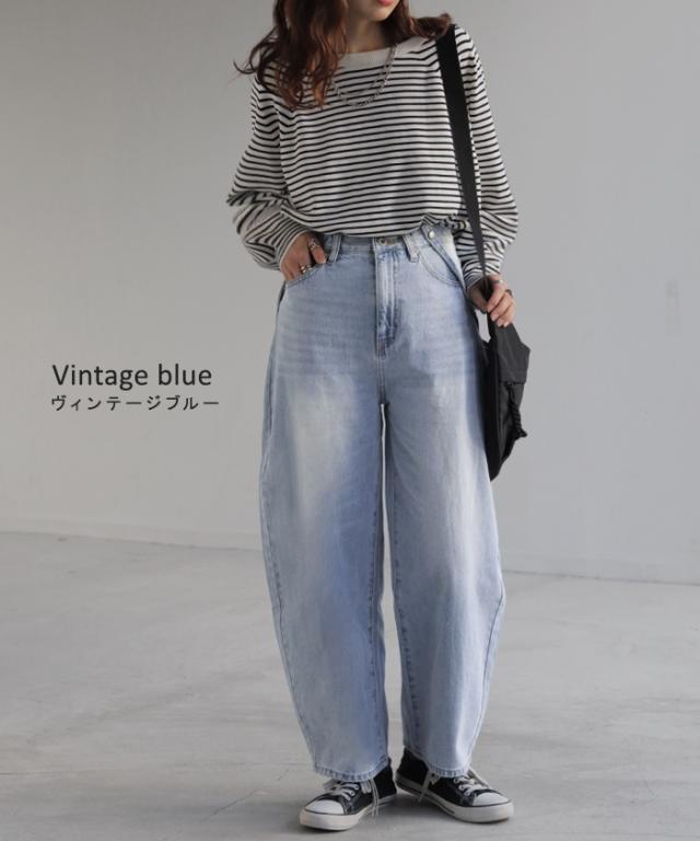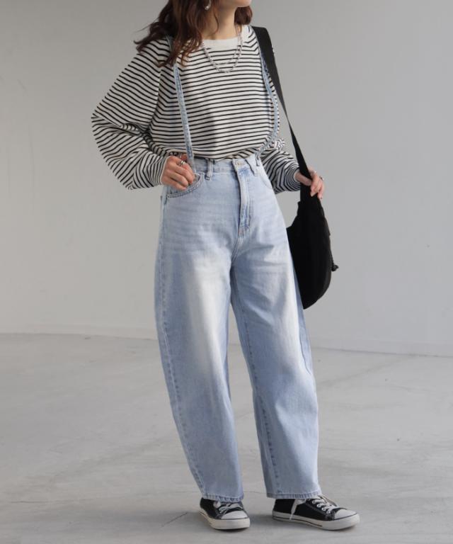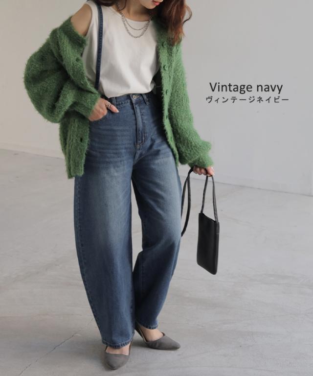 ひざから裾にかけてゆるやかにカーブするフォルムが魅力のデニムパンツです。