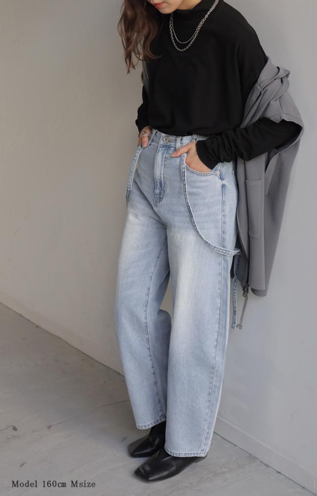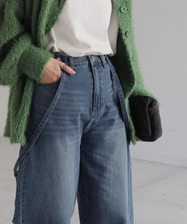 取り外しができるサスペンダー付きなので2WAYでのスタイリングを楽しめます。