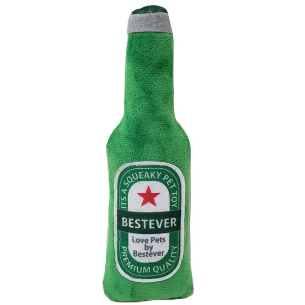 BESTEVER スクィーキー ビアボトル グリーン 愛犬と乾杯ができるリアルなビールボトルのぬいぐるみトイ。お友達わんことのパーティーを盛り上げるアイテムとしてもおすすめです。