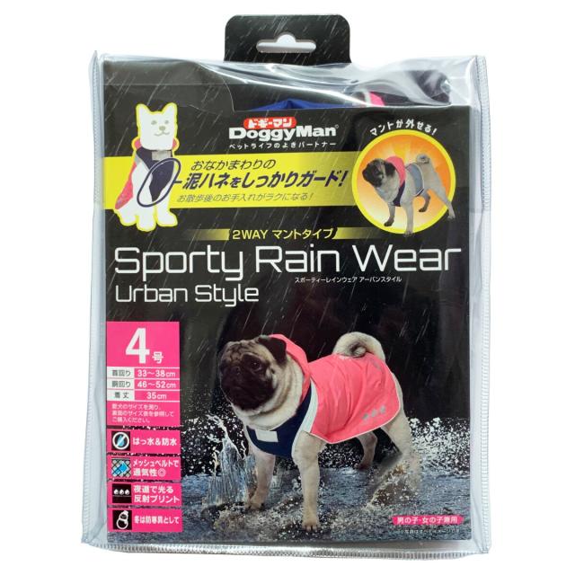 ドギーマン スポーティーレインウェア アーバンスタイル 4号 ピンク×ネイビー 犬 雨具 カッパ