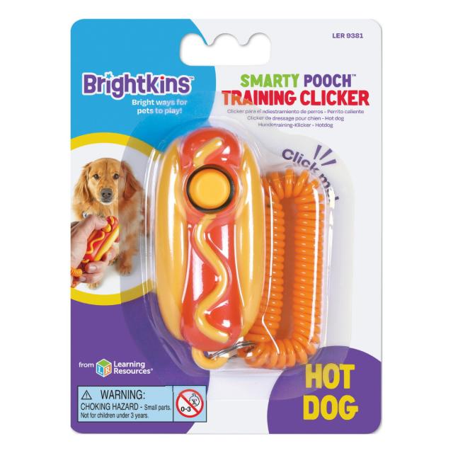 ブライトキンズ 知育トイ カチッとごほうびクリッカー ホットドッグ 「カチッとごほうびクリッカー ホットドッグ」は、ボタンをカチッ!っと押すだけ!ご褒美タイムを知らせるトレーニングクリッカーです。ボタンを押すと、独特の「カチッ」というクリアな音で、ペットはご褒美の関連性を正しく認識し、コミュニケーションを図ることができます。クリッカーには、落下を防止するコイルブレスレットが付いているので、外出先でのトレーニングにも便利です。バッグチャームにもなるキュートなデザインのホットドッグ型クリッカーで愛犬とお出掛けしましょう。