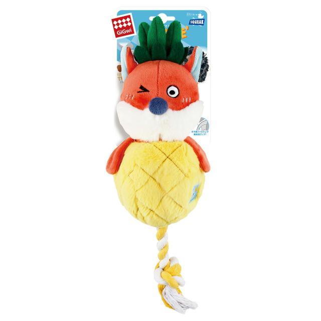GiGwi プルミーアウト パインフォックス アニマルとフルーツが一体になったユニークなぬいぐるみトーイ。フルーツの中にフードやトリーツを入れることで知育トーイとして遊ぶことができます。ロープがついているので、引っ張りっこ遊びもおすすめ!フルーツからアニマルを引っ張ることで分解できるので、別々に遊ぶことも可能です。セール