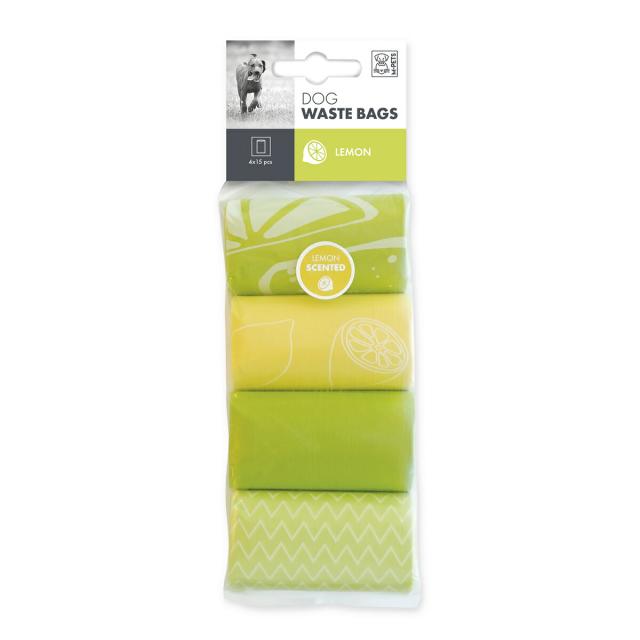 M-PETS エムペッツ エチケットバッグ レモン 60枚入(15枚×4ロール) 犬 うんち袋 マナー袋 エチケット袋 ゴミ袋 ウンチ 処理袋 香り付き お散歩 アウトドア おでかけ マナー